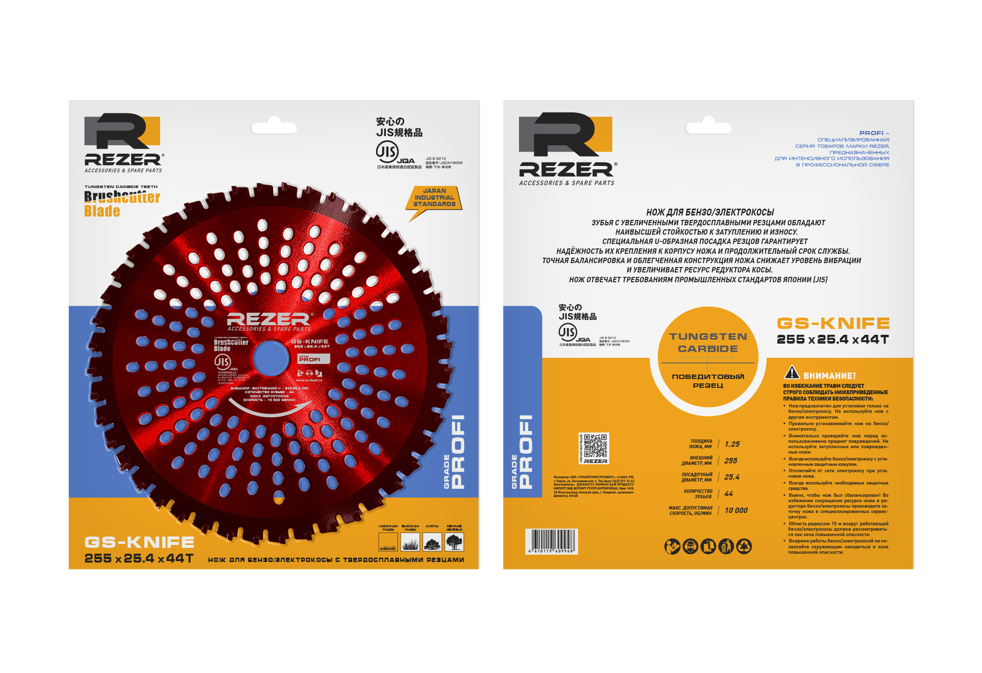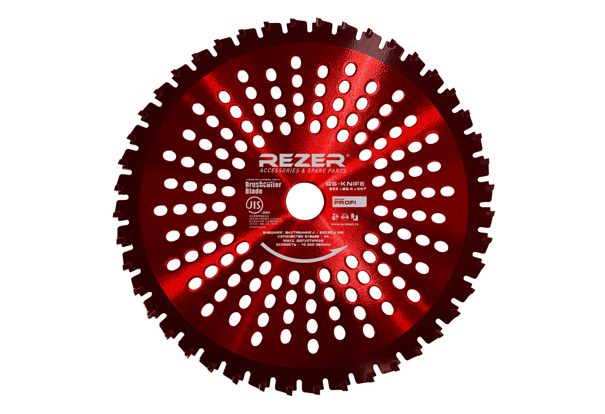 Ножи для бензо/электрокосы серии Rezer PROFI GS-Knife имеют зубья с увеличенными твердосплавными резцами, обладают наивысшей стойкостью к затуплению и износу. Специальная U-образная посадка резцов гарантирует надёжность их крепления к корпусу ножа и продолжительный срок службы. Точная балансировка и облегченная конструкция ножа снижает уровень вибрации и увеличивает ресурс редуктора косы.