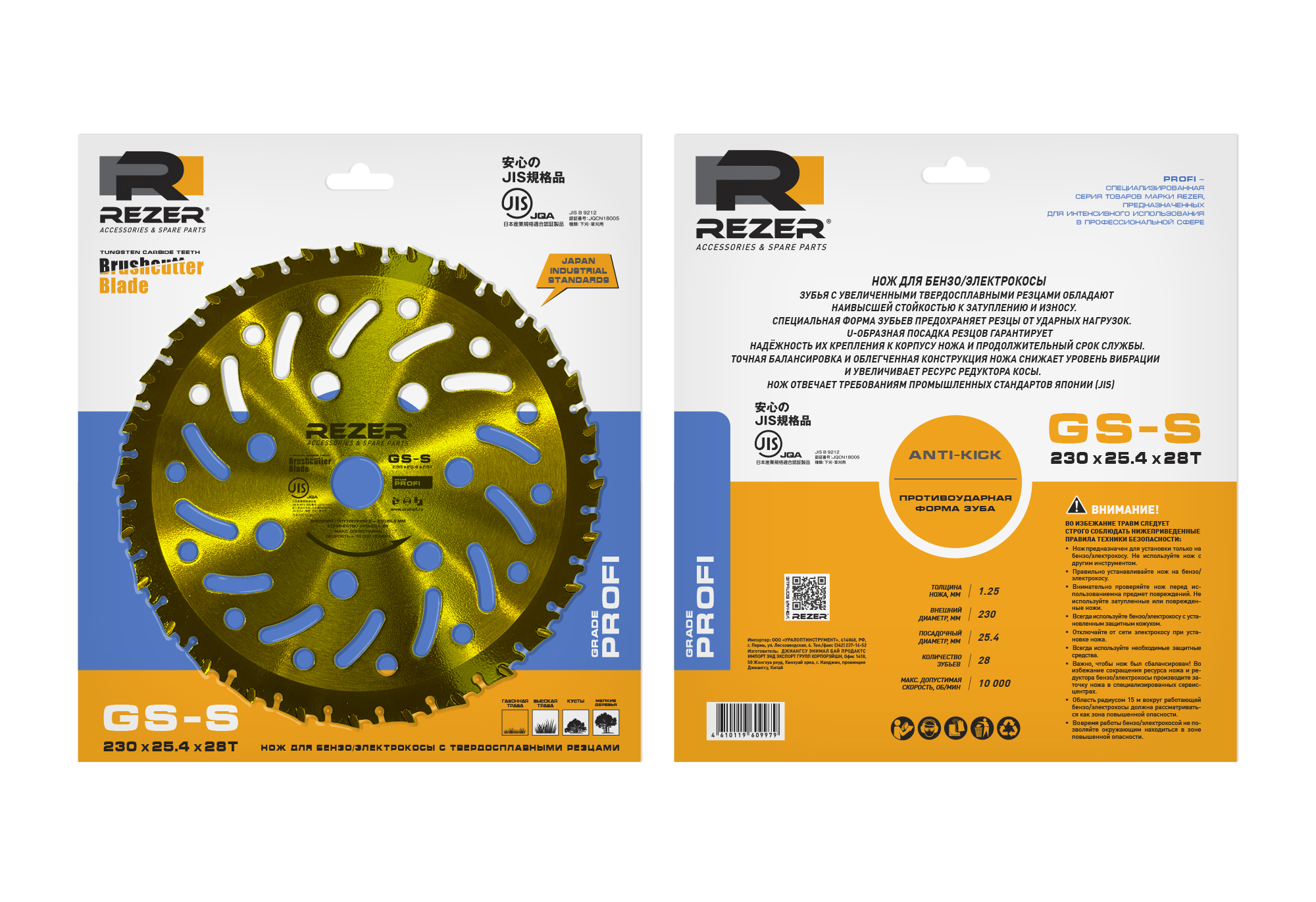 Ножи для бензо/электрокосы серии Rezer PROFI GS-S имеют зубья с увеличенными твердосплавными резцами, обладают наивысшей стойкостью к затуплению и износу. Специальная U-образная посадка резцов гарантирует надёжность их крепления к корпусу ножа и продолжительный срок службы. Точная балансировка и облегченная конструкция ножа снижает уровень вибрации и увеличивает ресурс редуктора косы.
