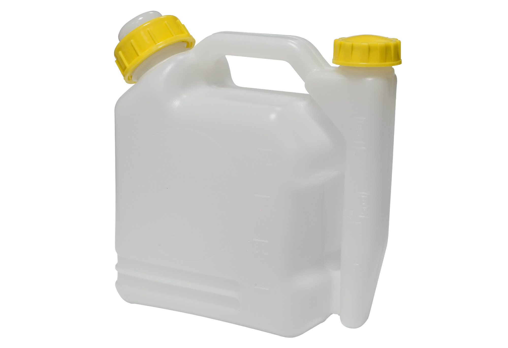 Оснащена дозатором, в который заливается необходимое количество масла в соответствии с инструкцией для вашей бензотехники. В саму канистру заливается бензин и все тщательно перемешивается. В комплект входит носик для удобной заливки.