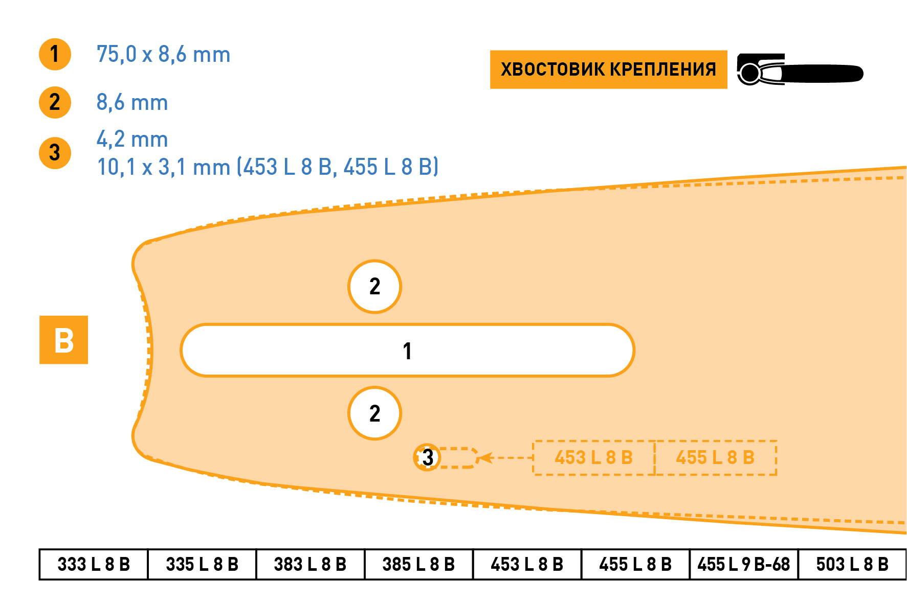 Rezer Standard 383 L 8 B Сварная многослойная направляющая шина для цепных пил