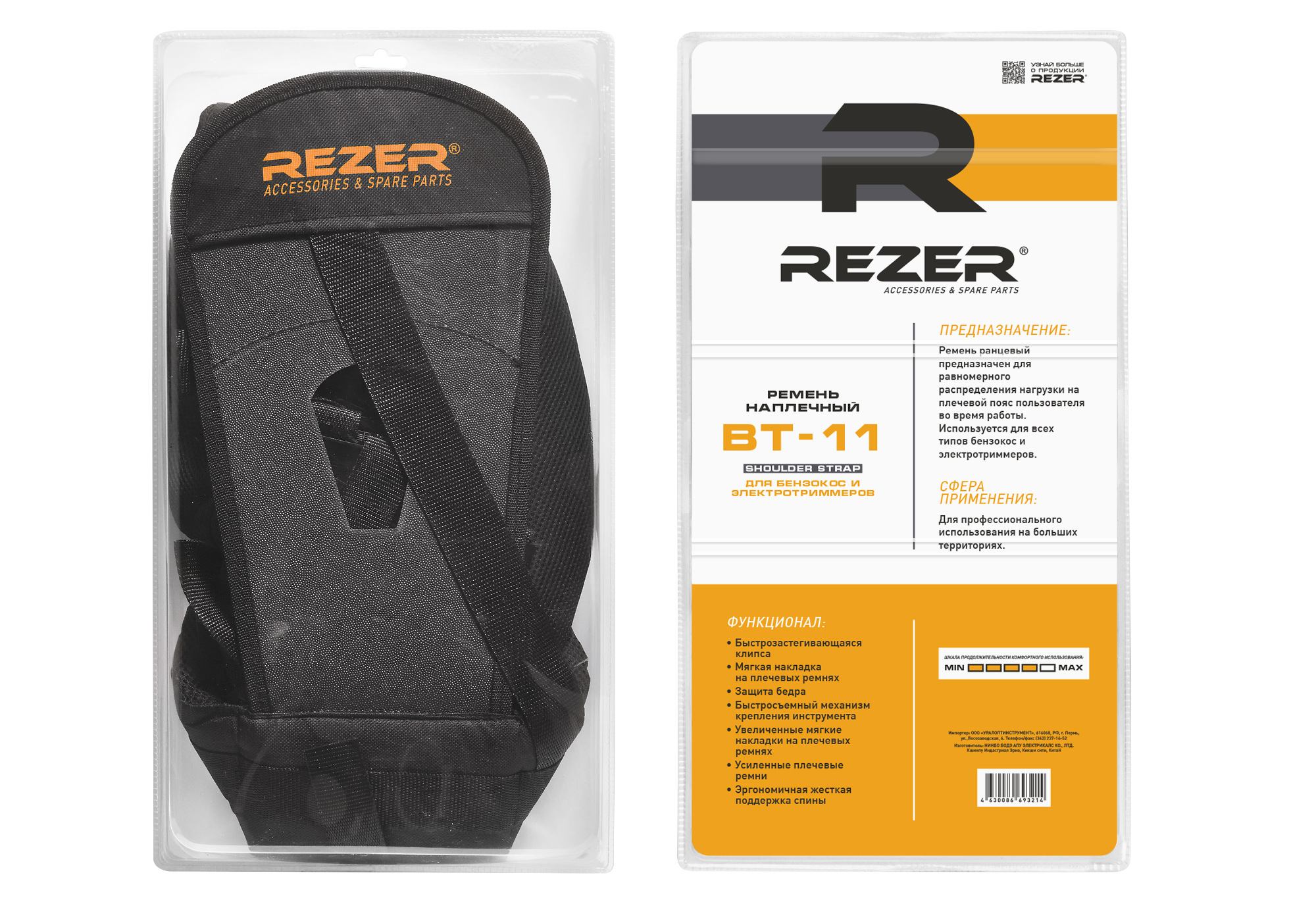 Ремень наплечный Rezer BT-11 предназначен для равномерного распределения нагрузки на плечевой пояс пользователя во время работы. Используется для всех типов бензокос и электротриммеров. Для профессионального использования на больших территориях.