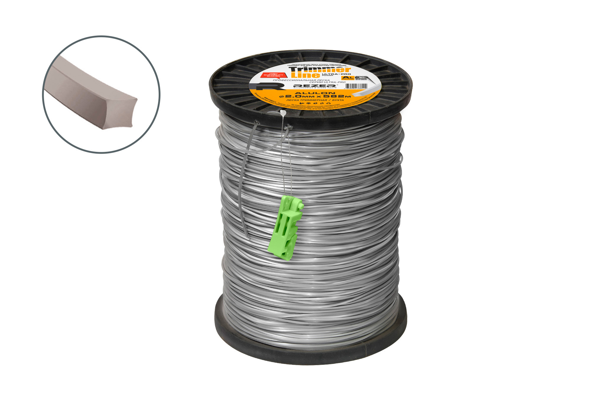 Леска для профессионалов. Материал повышенной износостойкости с содержанием частиц алюминия. Наиболее прочная леска в серии. Максимально долго сохраняется острота кромки в режущей части лески. Благодаря частицам алюминия происходит равномерное распределение тепла в мотке, что исключает перегрев и эффект «залипания» лески.