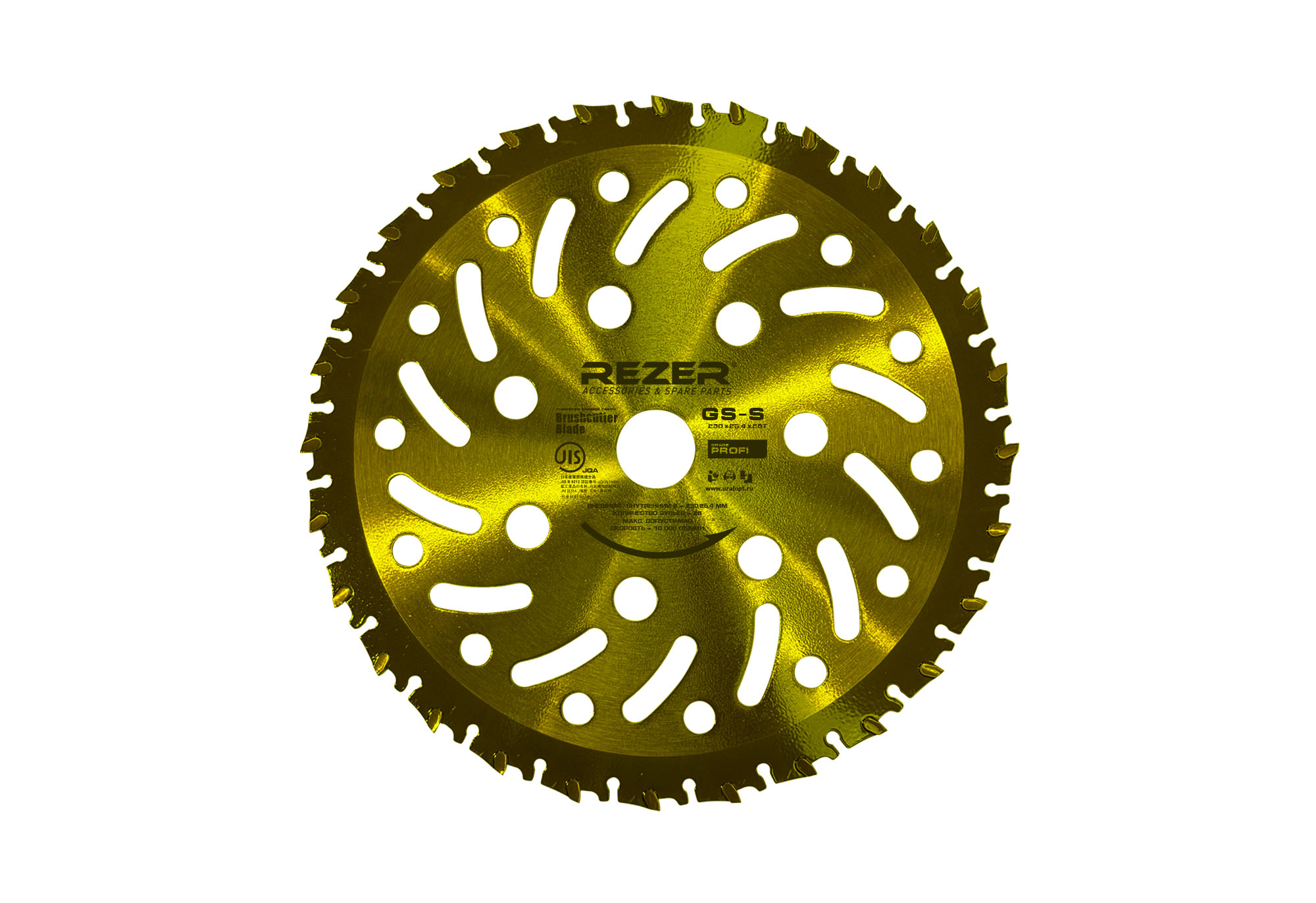 Ножи для бензо/электрокосы серии Rezer PROFI GS-S имеют зубья с увеличенными твердосплавными резцами, обладают наивысшей стойкостью к затуплению и износу. Специальная U-образная посадка резцов гарантирует надёжность их крепления к корпусу ножа и продолжительный срок службы. Точная балансировка и облегченная конструкция ножа снижает уровень вибрации и увеличивает ресурс редуктора косы.