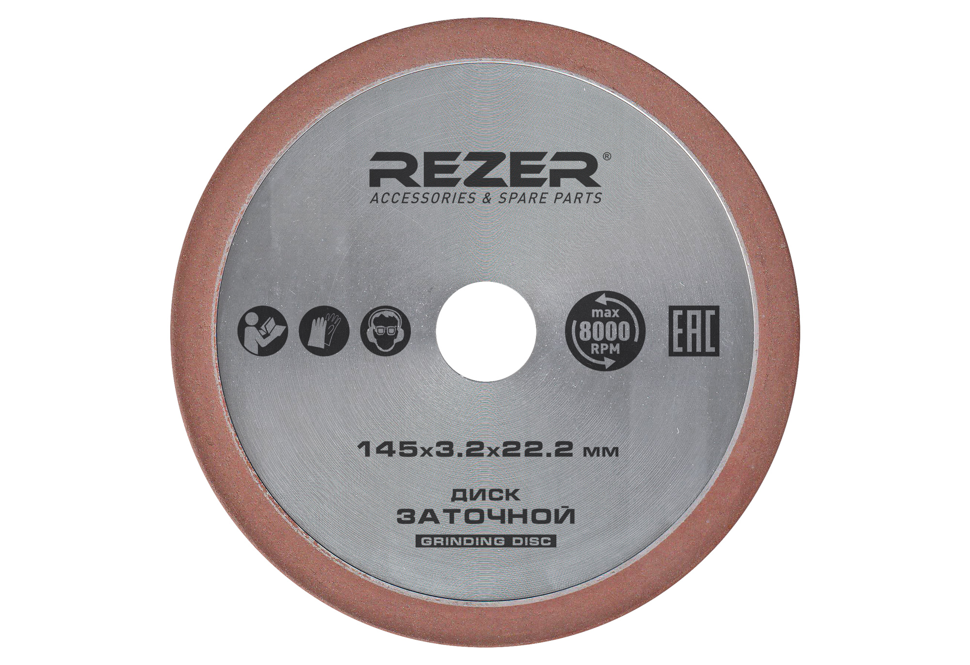 Алмазный заточной диск Rezer 145х3.2х22.2 мм применяется для заточки пильных цепей с режущими звеньями с победитовыми напайками и другого инструмента из твердого сплава.