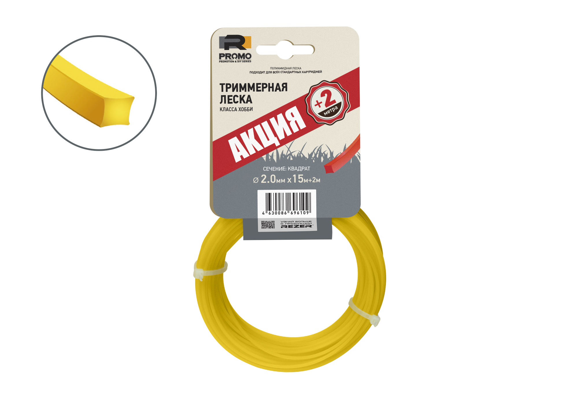 Леска PROMO класса хобби по акционным ценам. Имеет сечения в форме круга, квадрата, звезды и витого квадрата.