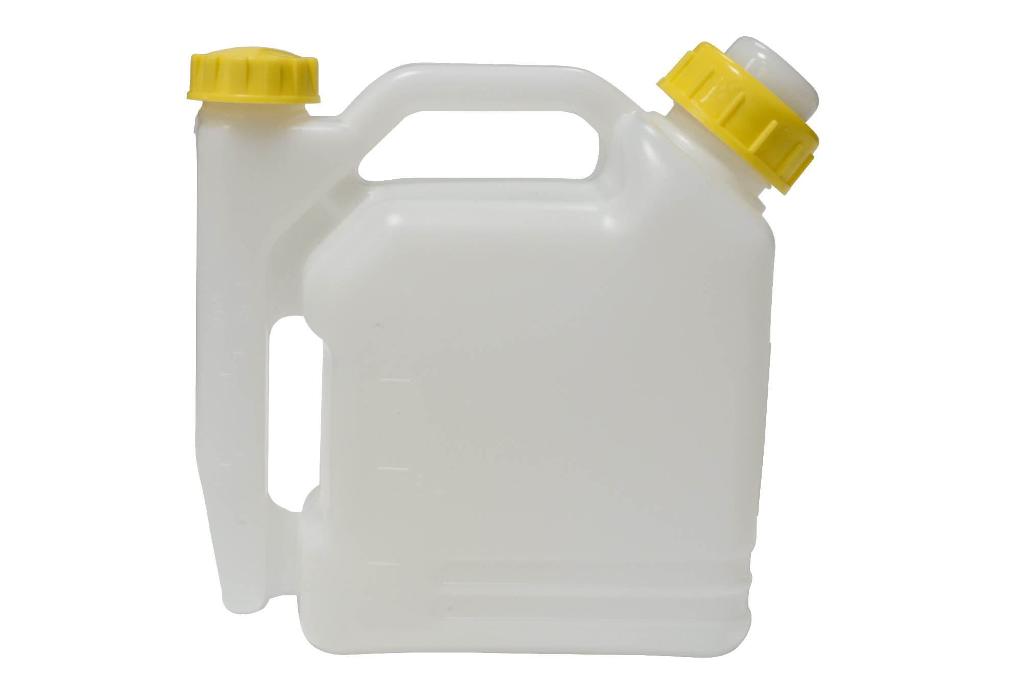 Оснащена дозатором, в который заливается необходимое количество масла в соответствии с инструкцией для вашей бензотехники. В саму канистру заливается бензин и все тщательно перемешивается. В комплект входит носик для удобной заливки.